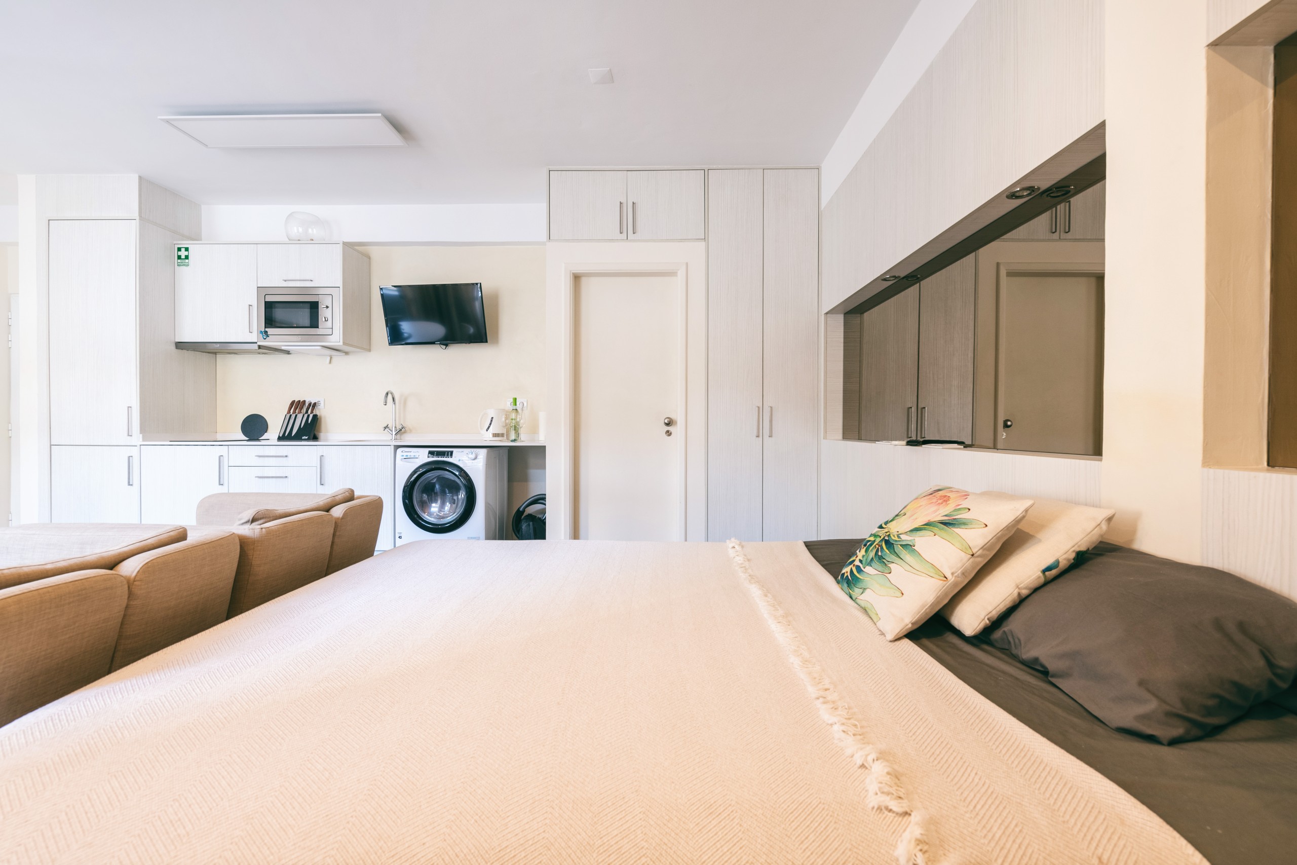 The studio has everything you need for a comfortable stay: a comfy bed, a fully equipped kitchenette, a seating area, and a modern bathroom. The open-plan layout is practical and filled with natural light — ideal for relaxing after a day exploring the city.