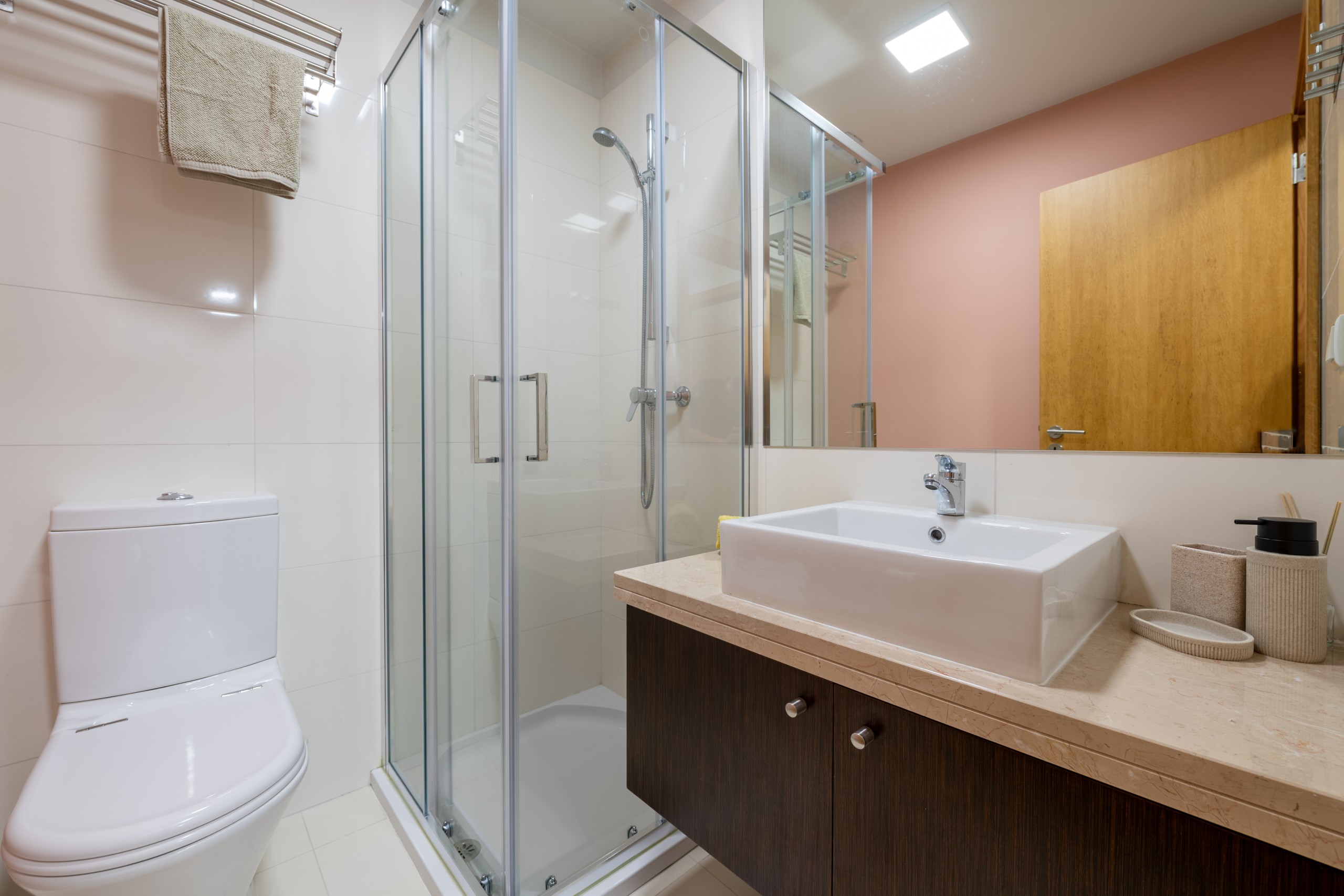 Duas casas de banho modernas, com um design fresco e contemporâneo.