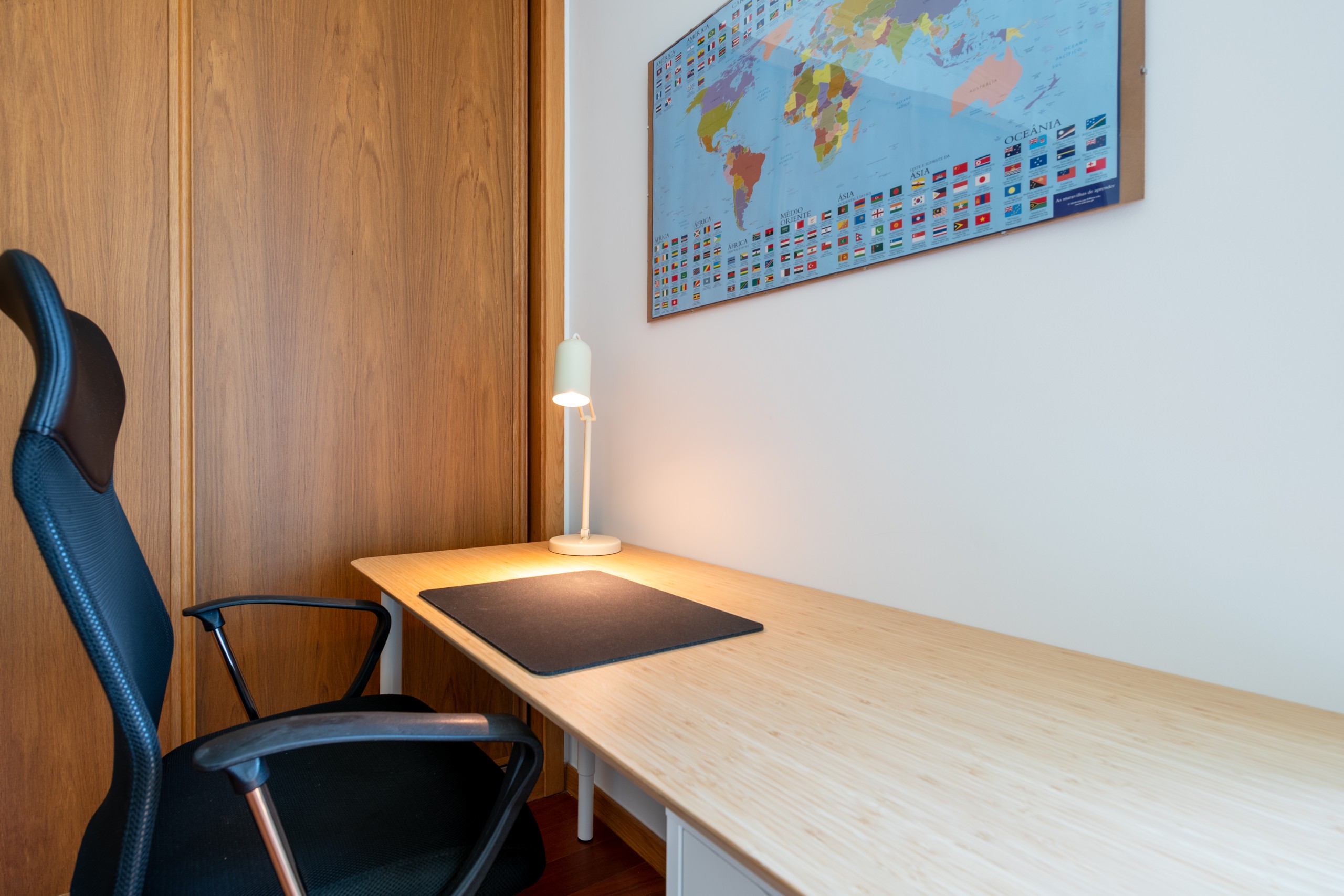 Espaço de trabalho dedicado e internet rápida, ideal para combinar descanso e produtividade.