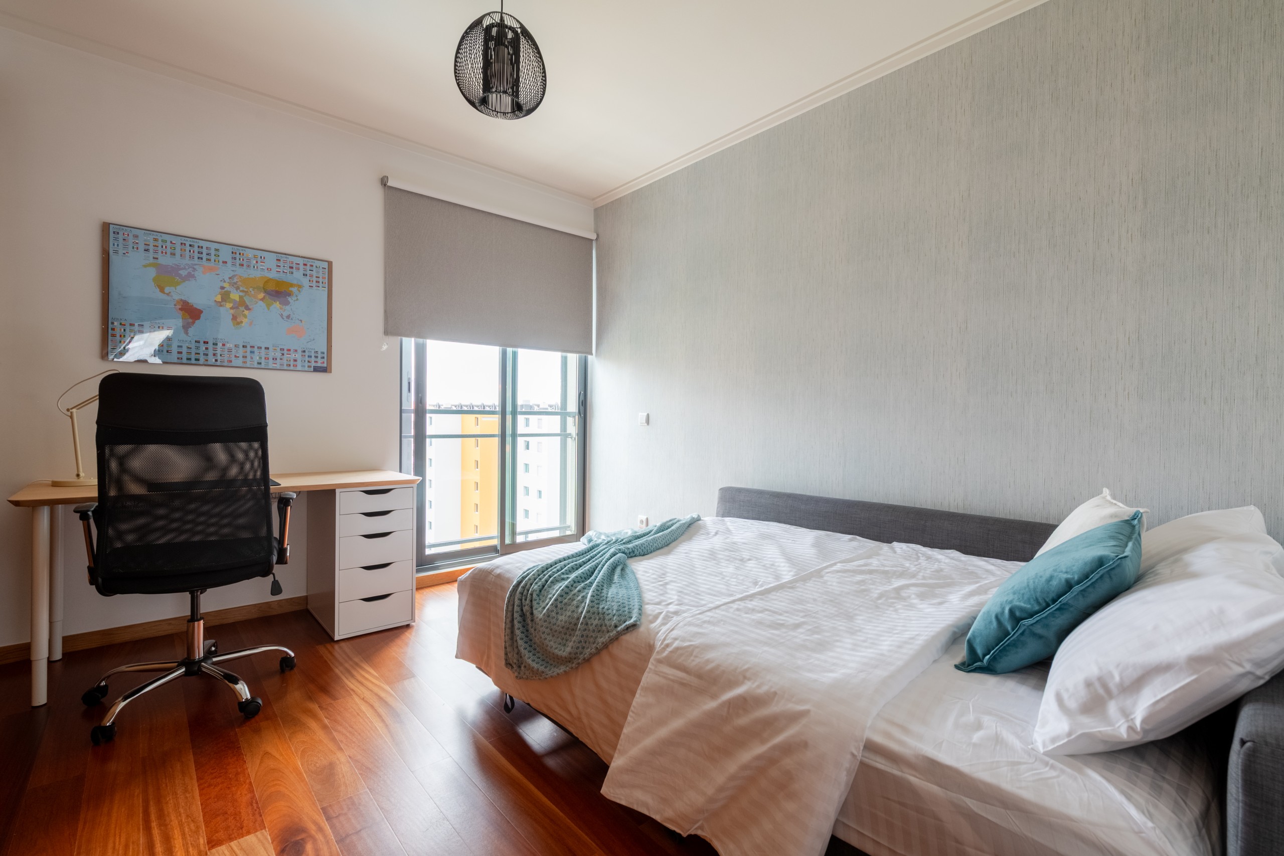 Os hóspedes podem usufruir de todo o apartamento, incluindo a cozinha, os quartos, as casas de banho, o espaço de trabalho e o estacionamento na garagem. Terão também acesso à piscina e ao ginásio do complexo.